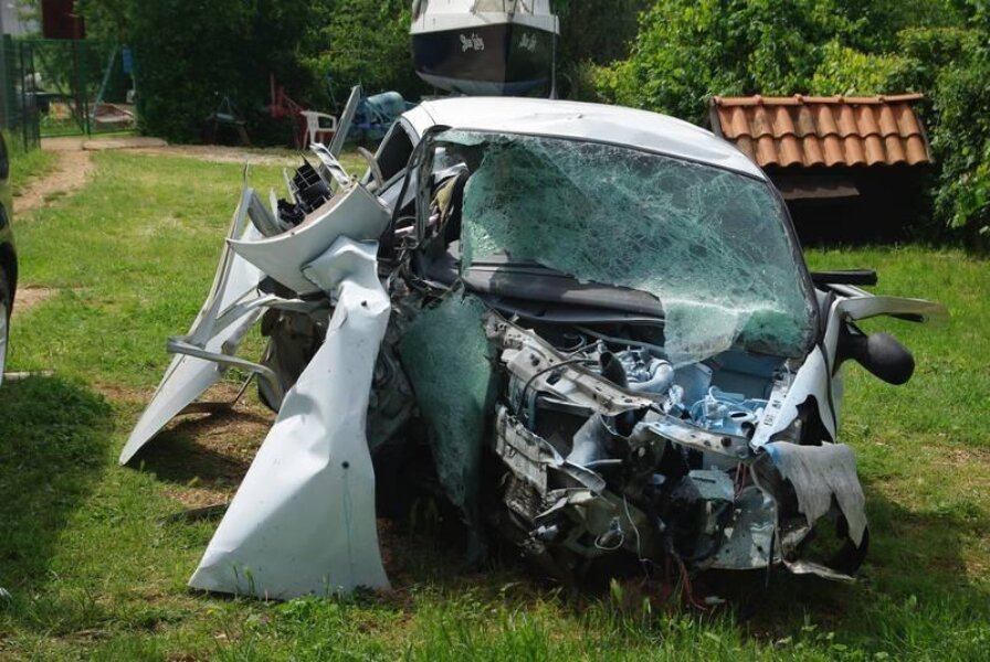 Potpuno uništeni automobil se od siline udarca odbio na suprotnu stranu prometnice.