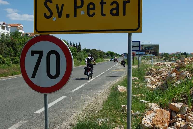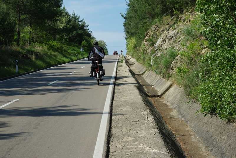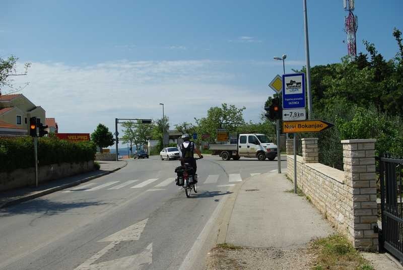 Taj dio puta teče glatko. Cesta vodi tik uz more i isto je tako ravna. Elektromotor se gotovo niti ne ukopčava, a počinjem koristiti i 4. stupanj prijenosa. Oho! Nešto je, kao, Maystor ojačao! Jer 4-tu sam do sada koristio samo na nizbrdicama. A i desna noga me nekako bolje sluša, više ne udaram skočnim zglobom po nosaču pedale. Bit će da je to sve zbog jutarnjeg makjata, kad je sve krenulo nekako lakše.