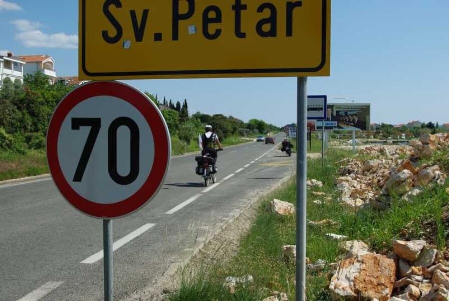 Tu skrećemo desno i bura nam postaje saveznik…konačno u leđa! U prolazu uočavamo farmu tovara i dosta prodavača koji uz cestu prodaju raznorazne sadnice. Nakon cca 30 km ili sat i pol vožnje stižemo u predgrađe Zadra. Odmah uočavam velike promjene koje su se dogodile od moje zadnje posjete: uređeniji je, profinjeniji, veći. Za razliku od moje Pule, vidi se značajan napredak.