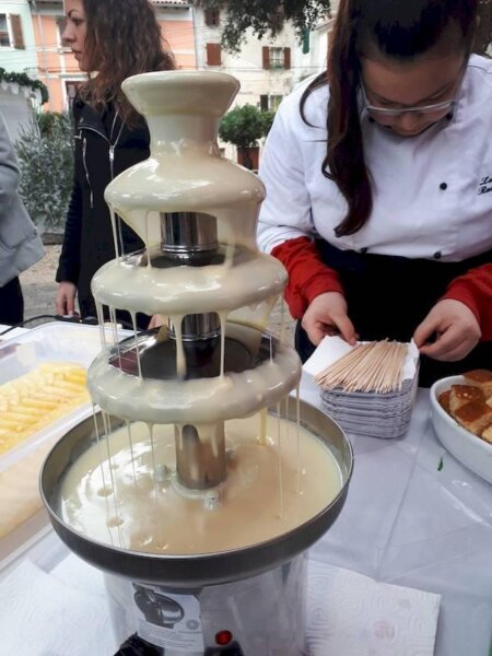Besplatna degustacija privukla je brojnu djecu, ali i odrasle koji su te slastice mogli uranjati u čokoladne fontane, dok je na lijepo uređenom paviljonu održana i predstava porečke Udruge USB.