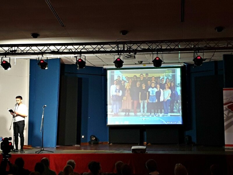 „Po dolasku u Šibenik bili smo lijepo ugošćeni. Iste je večeri bilo organizirano svečano otvaranje smotre, a dio toga bila je naša Aida Mrkaljević uz izvedbu emotivne recitacije 'Naša tajna'. Uslijedilo je druženje s dramskom grupom iz labinske Srednje škole Mate Blažine, s kojom smo proveli ostatak Smotre. Drugi su dan održane radionice za samostalne novinarske i literarne radove. Svaki je učenik predstavio svoj rad pročitavši ga pred komisijom i drugim učenicima.