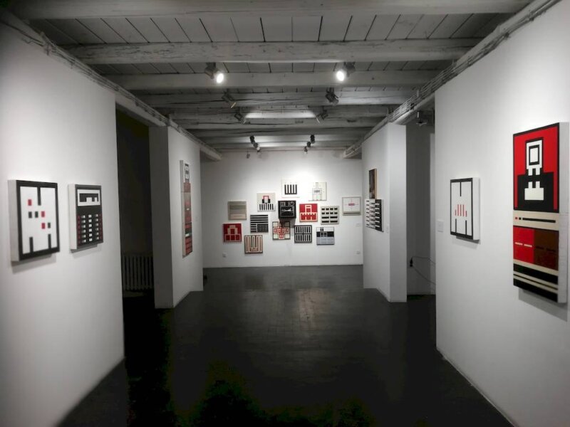Apstraktno slikarstvo geometrije Sebastijana Vojvode na prvi pogled zbunjuje svojim izborom već odavno usvojenih estetskih formi, oblika, boja. Radovi na beogradskoj izložbi jedan su mogući izbor od mnoštva radova koje Vojvoda stvara već duži period. Zašto izbor baš ovih slika, ili, zašto su na beogradskoj izložbi one postavljene baš na ovaj način… za umjetnika uopće nije važno. Kompozicije su mogle biti i drugačije, mirnije, dinamičnije, nježnije…