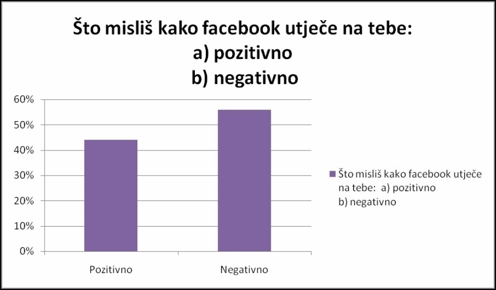 56% ispitanika misli da facebook negativno utječe na njih, a 44% misli da utječe pozitivno.