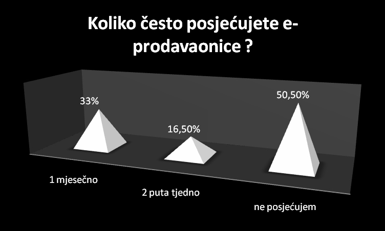 Većina ispitanika ne posjećuje internet prodavaonice, a oni koji to čine, većina to čine 1 mjesečno.