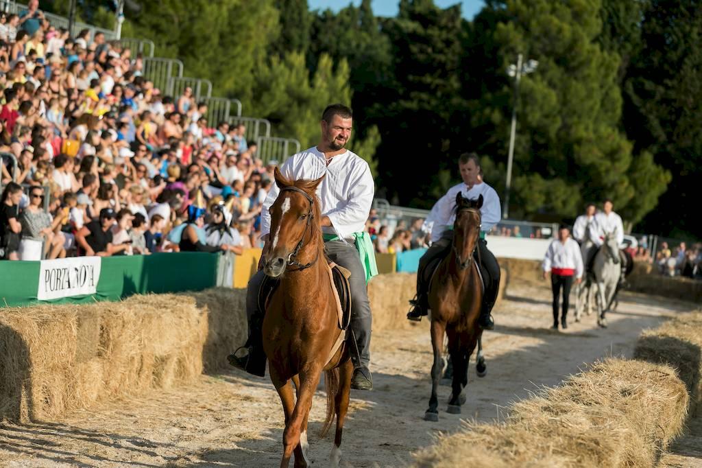 Sve je započelo prisegom odanosti glavnom sucu, koji se zajedno s pomoćnicima brinuo o tijeku i regularnosti natjecanja. Mastro di Campo Jakov Grgić, povijesnog imena Zuane Sincich, zajedno s pomoćnikom, pomno je pratio spretnost i preciznost u gađanju konjanika Petra Benčića, Željka Radole, Nandija Radole, Gordana Galanta, Josipa Frankovića, Danijela Bertoše, Anđelka Lakovića, Fabijana Babića, Ivana Banića, Zorana Uravića, Antonija Osipa i Stefana Osipa.