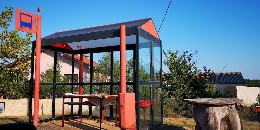 Oštećene vremenskim nepogodama ili devastacijom (čije posljedice se plaćaju iz proračuna), autobusne čekaonice sanirane su u naseljima Antonci, Veli Maj, Vranići, Kadumi, Jasenovica, Kirmenjak, Bonaci, Nova Vas i Baderna. Do početka školske godine sanirat će se i preostala oštećenja i urediti autobusne čekaonice. Radove na sanaciji autobusnih čekaonica izveo je Staklarski obrt Pino Staklar.