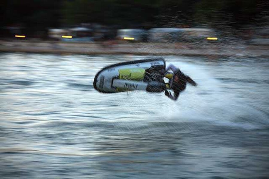 Iako se radi o radnoj posjeti, njegovo baratanje vodenom jurilicom prekjučer u sumrak izazvalo je veliko zanimanje i veselje prisutnih, ponajviše djece koja su sa oduševljenjem pratila vratolomije.