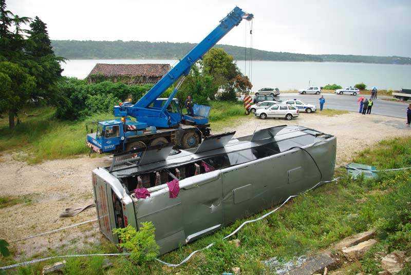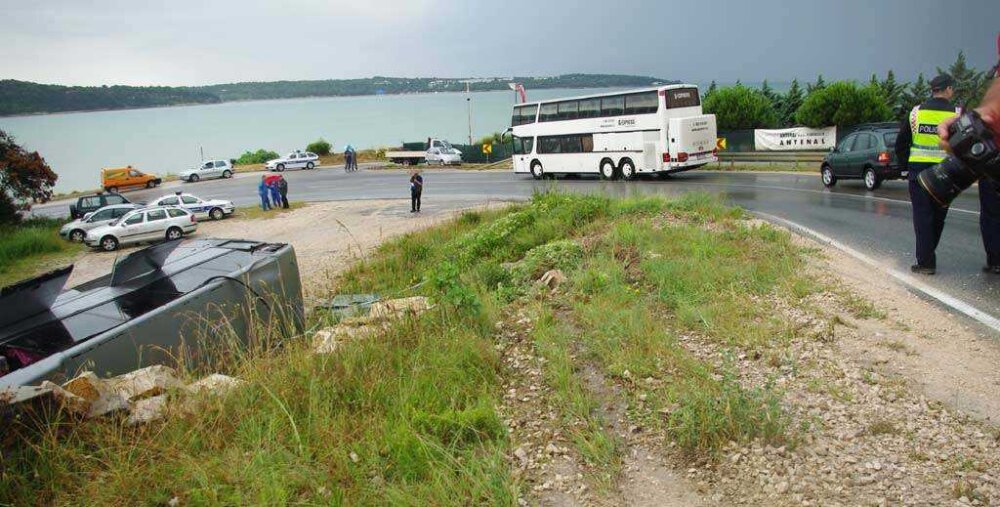 Jutros u 3:45 sati kod kamenoloma Antenal sa ceste je sletio i prevrnuo se na bok češki autobus sa 31 putnikom i dva vozača. Osim autobusa, u prometnoj nesreći nije sudjelovalo ni jedno vozilo. Dvije su osobe teže, a dvadeset ih je lakše ozlijeđeno.