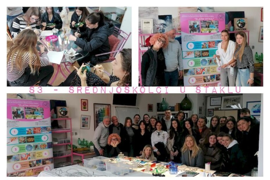 „S³ - Sjaj u staklu srednjoškolaca“ naziv je projekta koji udruga „Staklo & Umjetnost“ provodi u suradnji sa srednjim školama. U ponedjeljak, 21. studenog 2022.g., učenike trećeg razreda jezične gimnazije s razrednicom Marinom Zelenikom i profesoricama Petrom Andrić i Dunjom Janko, u Stranićima kod Nove Vasi ugostila je Udruga za promociju tradicionalnih umjetnosti - „Staklo & Umjetnost“. Josip Deutsch, predsjednik udruge i ravnateljica Učilišta „Zlatni Vitraj“ Jelena Golden s volonterima udruge u toj su prigodi održali radionicu za učenike i predavanje o povijesti stakla, kulturnoj baštini te umjetničkom stvaralaštvu u staklu i djelatnostima umjetničkih obrta - sve sa ciljem podizanja svijesti o važnosti i potrebi očuvanja tradicionalnih zanata, naslijeđa, ali i okoliša kroz recikliranje stakla i drugih materijala.