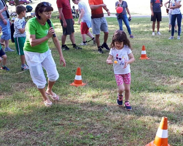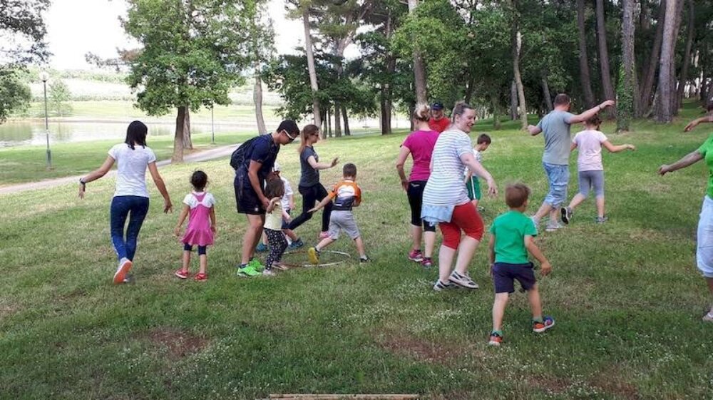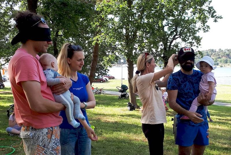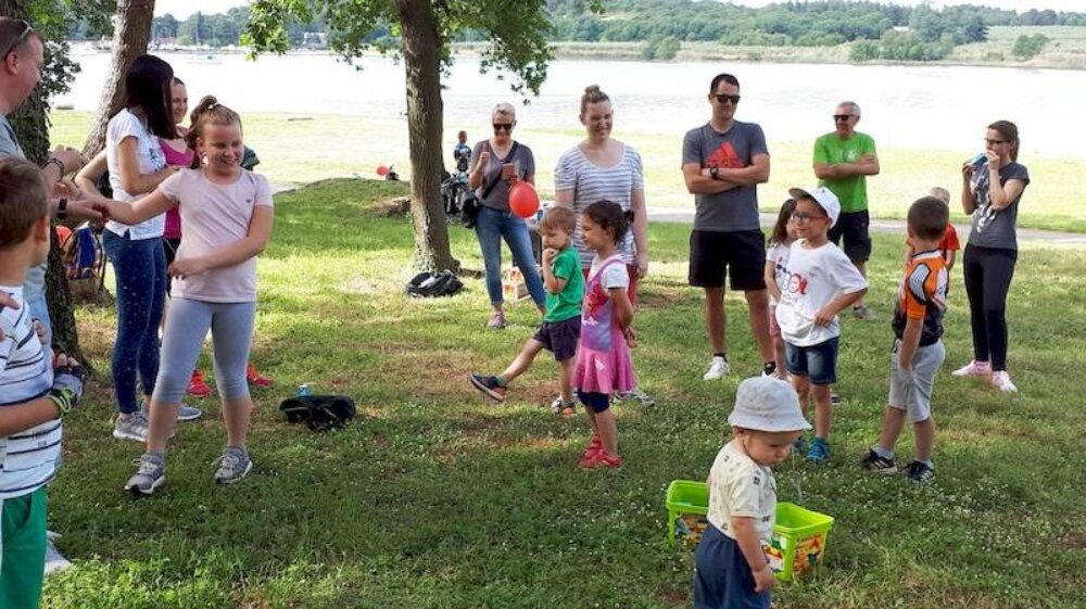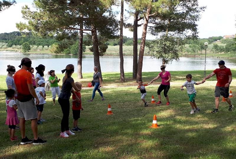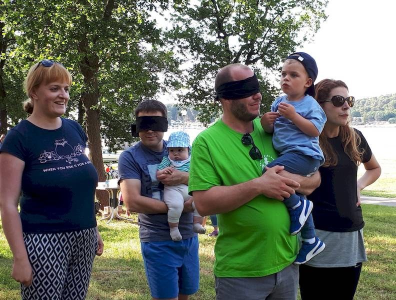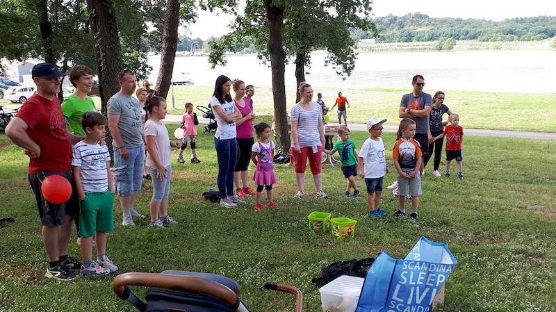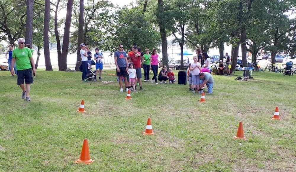 Kao i uvijek, krenulo se od akvagana na Gradskom kupalištu na približno polusatnu sporu vožnju biciklima uz more, do šumarka nadomak Ski liftu u Zelenoj laguni. Nakon okrjepe i pripovijedanja prionulo se timskim igrama – od potezanja konopa, nošenja loptice u žlici u trku do vođenja roditelja oko čunjeva dok su im oči zavezane i drugo. Bilo je smijeha, dakako, a posebno su u DND-u bili zadovoljni što su sudjelovali roditelji s bebama u kolicima, koje je animirala voditeljica plesa za mame i tate s bebama.