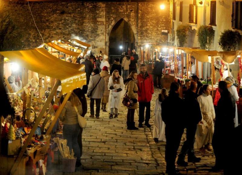 U sklopu živih jaslica u Svetom Lovreču se održava i Božićni sajam na kojem se mogu nabaviti proizvodi lokalnih obiteljskih poljoprivrednih gospodarstva, poneki suvenir za uspomenu ili pak neki slatkiš, a djeca se mogu poigrati starinskim igračkama. Drevni grad, stare kamene zgrade, kaldrma i više od 150 kostimiranih osoba stvorili su prekrasan ugođaj i uvod u blagdanske dane. Uz sve to u galeriji Placa mogla se razgledati izložba članova KAF-a (Klub amaterske fotografije), a potom uživati u kuhanom vinu i raznim delicijama. Program će se ponoviti 26. prosinca i 6. siječnja. (Mirjan RIMANIĆ, snimio Milivoj MIJOŠEK)