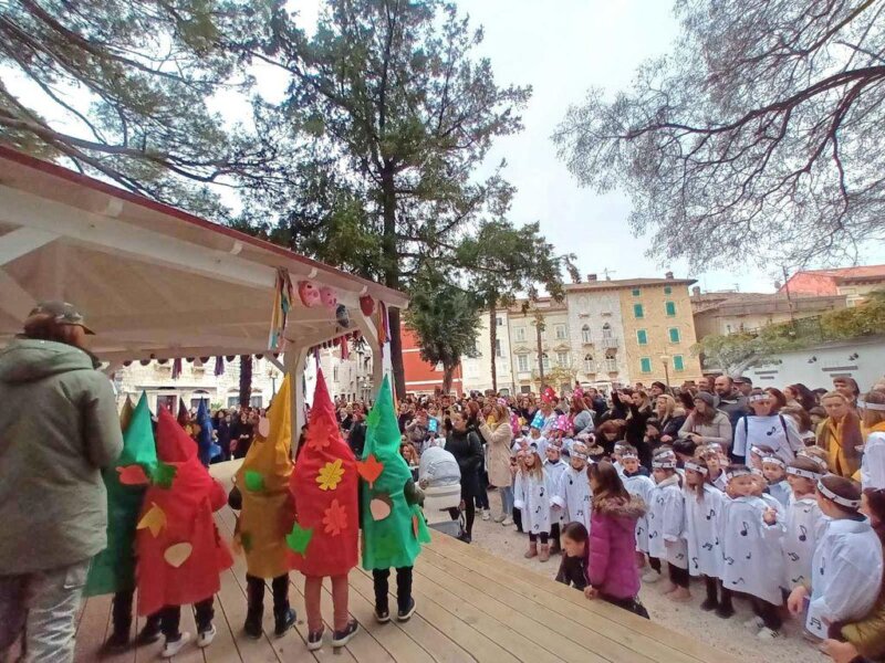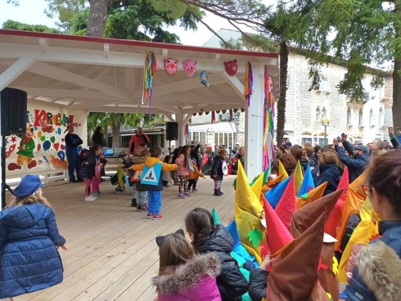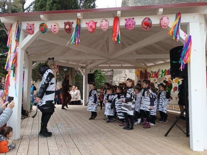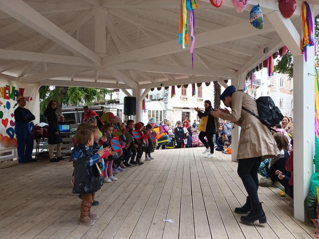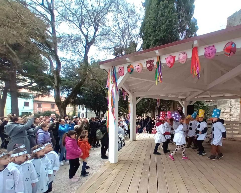 Brojne male maškare iz svih porečkih dječjih vrtića zašarenile su danas prijepodne gradske trgove i ulice. Dječji karneval startao je okupljanjem maškarica na Trgu slobode, nakon čega su se, praćeni odgajateljicama, roditeljima, nonićima i prijateljima svi zajedno uputili do Trga Matije Gupca. Tu su prikazali svoje maske i koreografije koje su izradili u radionicama s odgajateljicama i roditeljima, a sve na paviljonu, prigodno ukrašenom radovima nastalim u likovnom laboratoriju i kreativnim radionicama Društva Naša djeca Poreč.