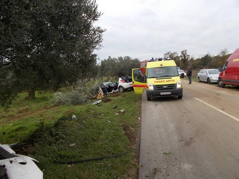Jedna je ženska osoba teže ozlijeđena u prometnoj nesreći koja se danas oko podneva dogodila na cesti Bale-Rovinj. Neslužbeno se doznaje kako je osobnim vozilom Hyundai i20 iz zasad nepoznatih razloga sletjela sa kolnika i zabila se u stablo masline.
