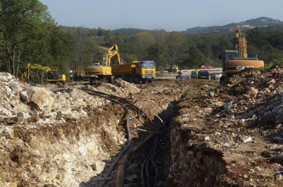 Na gradilištu za najveći rotor, onaj u Vrvarima, promjera 59 metara, ujedno je i najmanja gužva. Budući će rotor nići na spoju državne ceste Poreč- Pazin i sjevernog dijela porečke zaobilaznice.