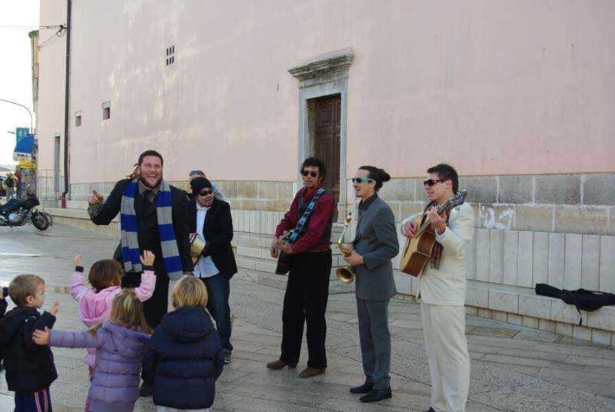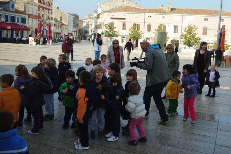 Jučer ujutro je na porečkom Trgu slobode bilo više nego zabavno: članovi popularnog "Cirkusa" okupili su se radi snimanja spota koji bi, kako nam je snimatelj i redatelj Mladen Đaković rekao, trebao izaći uoči izbora (!). Kad su naišle tete sa djecom iz vrtića, kulisa za spot bila je potpuna.