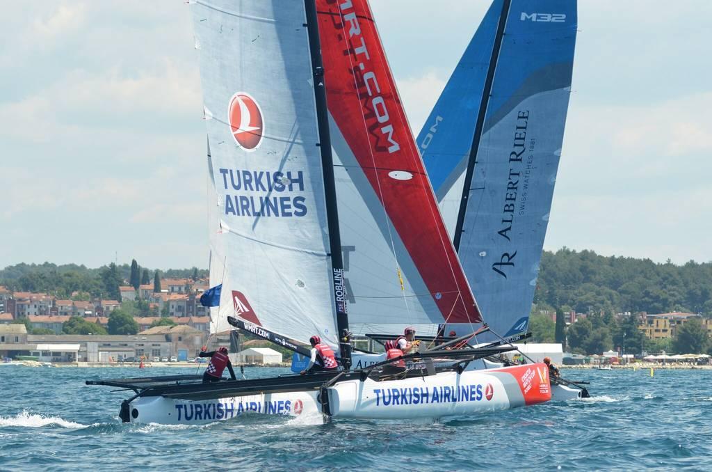 U polufinale tako su se plasirali naš Croatia Match Racing Team u sastavu (Šime Fantela, Igor Marenić, Rajko Kujundžić i Mihovil Fantela), francuska posada Quentina Delapierrea, Danac Joachim Aschenbrenner i Nizozemac Pieter-Jan Postma. Kako bi prošle dalje u finale, posade su u međusobnim srazovima morale prve doći do dvije pobjede. Za rukom je to pošlo najprije Nizozemcima. Naši su dečki odlično startali protiv Danaca i izborili pobjedu u vjerojatno njihovom najboljem plovu u Poreču. Međutim, u sljedećem dvoboju s Francuzima izgubili su utrku, pa su još jednom morali jedriti protiv njih, budući da su oba tima imala po jednu pobjedu. U njihovom drugom međusobnom okršaju, kod prilaza startnoj liniji Francuzi su zatvorili prilaz našima pa su Hrvati tada morali okrenuti svoj katamaran u vjetar kako ne bi prerano prešli startnu liniju. Na ovaj način izgubili smo povoljnu startnu poziciju koju smo imali, a Francuzi su pojurili naprijed te ostvarili nedostižnu prednost.