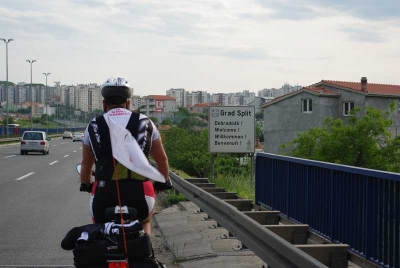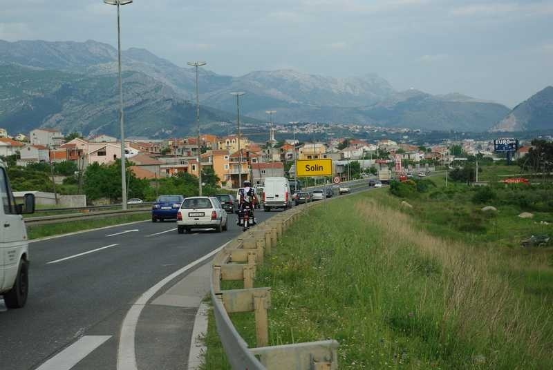 Već se nazire i Split. I tako je nadohvat ruke….ali nikako do njega stići. Uvijek je isti na horizontu. Nakon sat vremena vožnje ulazimo na četverotračnu cestu kod Solina. Ista nastavlja i kroz grad. Nije mi jasno zašto mi vozači trube i ljutito mašu rukama. Iluziju da me pozdravljaju razbilo je jedno čvorište, gdje se 3 dvotračne ceste sastaju i tvore – autoput!