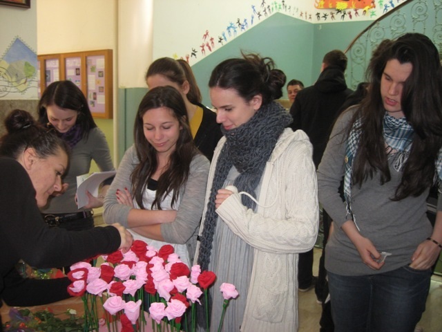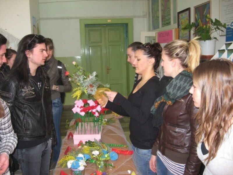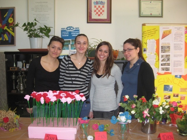 . Okušale su se u izradi ruža od krep papira, cvijeća pomoću platna i žice te su pokazale umjetničku stranu izrađujući bukete. Od davnina je poznato da se cvijećem može prenijeti neizgovorena poruka. U 18. i 19. stoljeću svaki je cvijet dobio svoje konkretno značenje. Tako ruža iskazuje ljubav, a orhideje plodnost i lijepu damu. Učenici i djelatnici škole s oduševljenjem su prihvatili organiziranu akciju i time pomogli maturantima u organiziranju maturalne zabave. Prodaja cvijeća odvijala se u sklopu programa