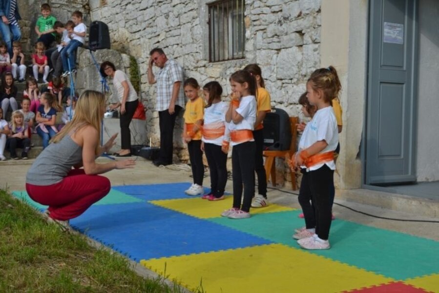 Prvi nastup na Danu otvorenih vrata imalo je vrsarsko Društvo naša djeca, koje se predstavilo izvedbama dječjeg zbora Mići Tići, te točkama malih polaznika plesne radionice i radionice engelskog jezika. Iskoristili su lijepo vrijeme i nastupili u dvorištu, na otvorenom, a ne u svojim prostorima u prizemlju zgrade.