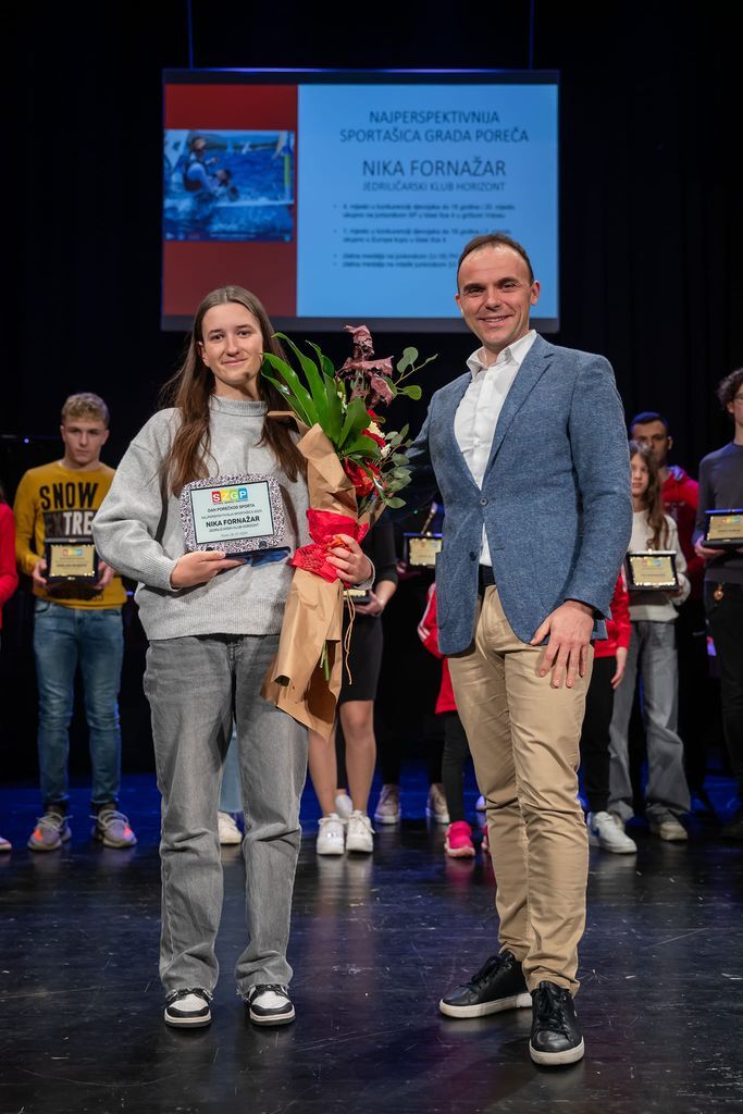 Najperspektivnija mlada sportašica, Nika Fornažar iz JK Horizont Poreč, osvojila je četvrto mjesto u konkurenciji djevojaka do 16 godina na juniorskom SP u klasi Ilca 4 u Grčkoj, 16. mjesto u konkurenciji djevojaka do 16 godina na juniorskom Europskom prvenstvu u klasi Ilca 4 u Španjolskoj, 1. mjesto u konkurenciji djevojaka do 16 godina i 2. mjesto ukupno u Europa kupu u klasi Ilca 4, zlatnu medalja na juniorskom (U-18) PH u klasi Ilca 4 i zlatnu medalju na mlađejuniorskom (U-16) PH u klasi Ilca 4.