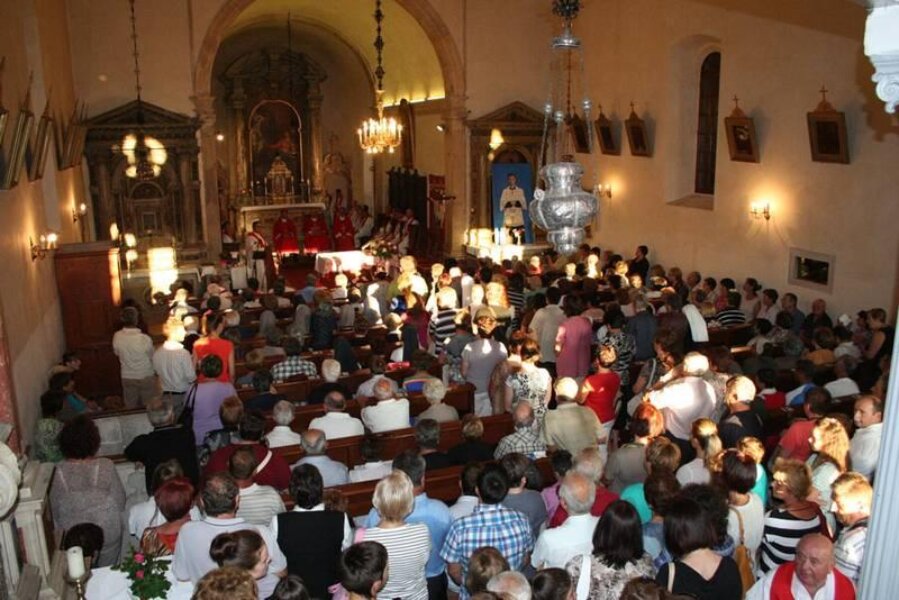 U prepunoj crkvi posvećenoj Marijinu navještenju svetu misu je predvodio zadarski nadbiskup, predsjednik HBK, mons. Želimir Puljić u zajedništvu s biskupom ordinarijem mons. Draženom Kutlešom i biskupom u miru mons. Ivanom Milovanom koji je na slavlju propovijedao.