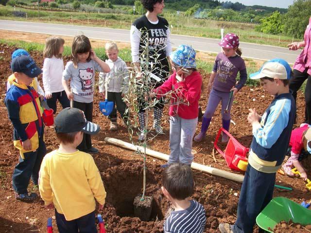 U petak, 30. travnja 2011. godine djeca Dječjeg vrtića Višnjan marljivo su pomagala u sadnji maslina djelatnicima Višnjanske razvojne agencije VIRA.