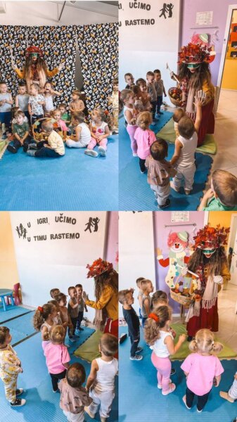 Uz pjesmice i recitacije o jesenskim plodovima i bojama prirode, dječji su glasovi ispunili šumski kutak vrtića radošću i smijehom. Teta Jesenka im je zahvalila punom košarom mirisnih mandarina, oraha i kestena, stvarajući pravi mali jesenski ugođaj.