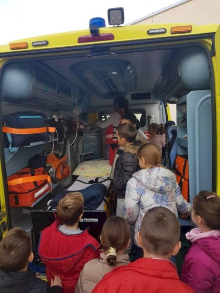Tim 2 u sastavu medicinska sestra Helena Đurić i vozač Danijel Brumnić prezentirao je znatiželjnim djevojčicama i dječacima svoj rad, nakon čega su znatiželjno razgledali vozilo i opremu hitne pomoći. (EH/dp)