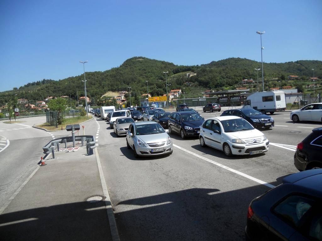 Na izlasku iz ipsilona prometna policija u vozilima i na motociklima pokušava uvoditi red te što bolju prohodnost prometa. I njima je najveći neprijatelj visoka temperatura preko 30 stupnjeva. Iako je kalendarski započeo i talijanski period ferija, Feragosto, na cesti nismo primijetili pretjeran broj Talijana, ništa više od proteklog vikenda.