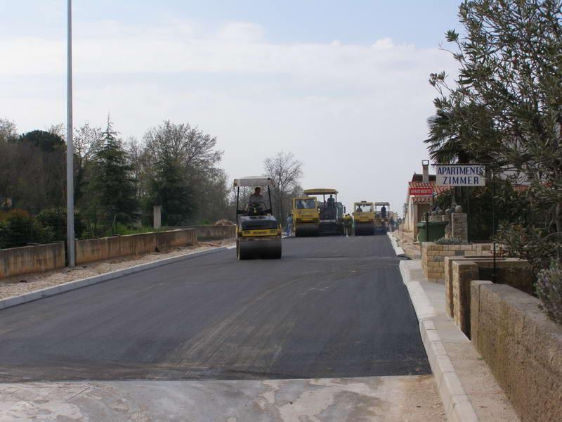 Radnici su danas krenuli sa asfaltiranjem a mi smo proskitali gradilištem na koje su nas, usprkos gužvi, propustili radnici i vozači na vrlo zaposlenim teškim strojevima.