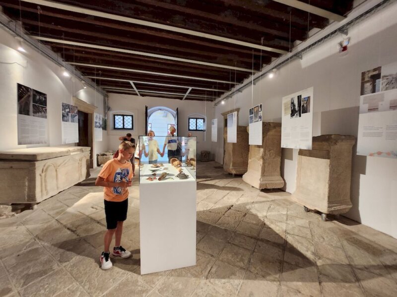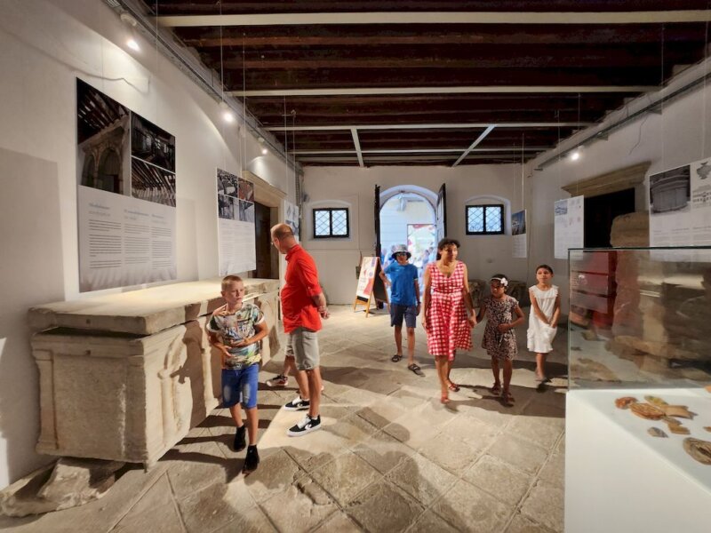 Posjetitelji su imali prigodu razgledati obnovljene prostorije uz stručno vodstvo kustosa Gaetana Benčića koji je svih zaintrigirao skrenuvši im najprije pažnju na izloženu „malu vetrinicu“ s malim dijelom svega što su pronašli među ostacima rimske gradske vile iz 1. stoljeća. Vila se nalazi ispod muzeja, a među pronađenim atraktivnim predmetima, osim mozaika, su oni za svakodnevnu upotrebu – od ženskog češlja za kosu do minijaturne kockice kojom su se igrala djeca.
