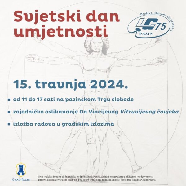 Pazinsko Društvo likovnih stvaratelja ove će godine po prvi put obilježiti Svjetski dan umjetnosti koji su proglasili UNESCO i International Association of Art (IAA/AIAP) u spomen i u čast jednog od najvećih umjetnika u povijesti, Leonarda da Vincija, a obilježava se na dan njegovog rođenja, 15. travnja.