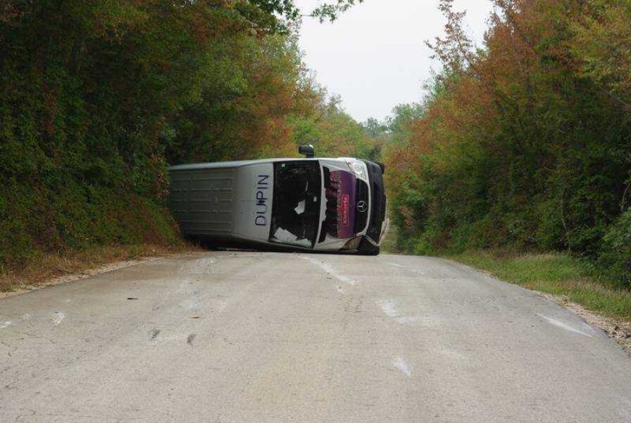 U pokušaju da izbjegne sudar, vozač kombija je desnim kotačima sišao sa prometnice, ali je tu na nesreću bio kanal, pa se kombi nakon zanošenja prevrnuo na desni bok, a onda je, okrenuvši se za 180 stupnjeva, završio nekoliko desetaka metara dalje.