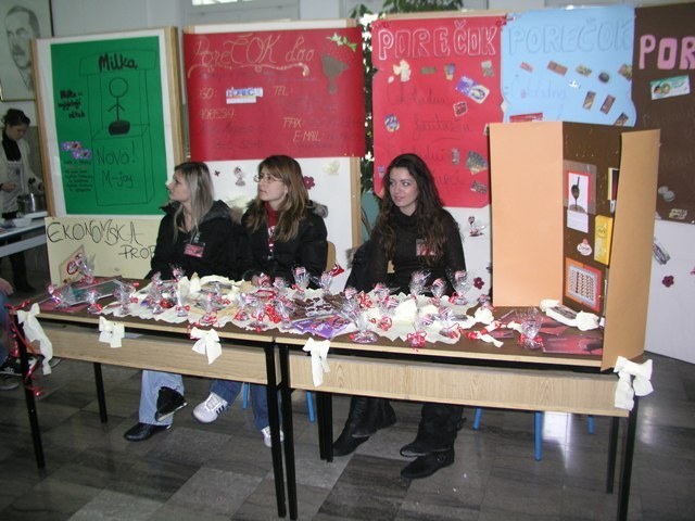 – Proizvodnja i prodaja čokolade i čokoladnih proizvoda. Na plakatima je predstavljena kompletna organizacija procesa rada - od osnivanja do proizvodnje i prodaje čokolade i čokoladnih proizvoda. Predstavljena su dva originalna proizvoda – čokoladna tabla