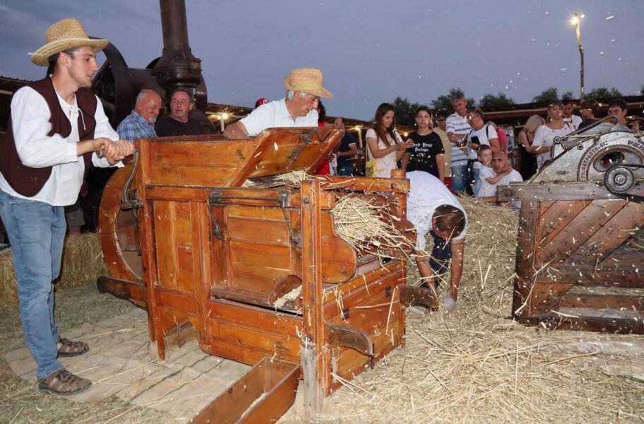 Između fascinantnih izložaka traktora, vršalica, kombajna i drugih poljoprivrednih strojeva od kojih su neki čak stariji od stotinu godina, posjetitelji su se polako okupljali do predvečerja toplog ljetnog dana, i zatim se povorka, predvođena težacima, njihovim alatima i strojevima, uputila prema žitnom polju, uzgojenom baš za ovu prigodu. Sunčan i topao dan odabiran je za žetvu zato da se žito na njivi kroz dan što bolje prosuši, jer i nakon što zrnje na kraju dana bude očišćeno, ono će se morati još dodatno prosušivati prije nego što ga se bude moglo mljeti.