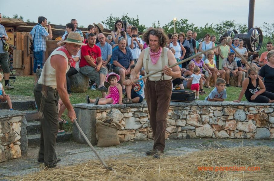 Ove je subote, 2. srpnja u izložbenom prostoru Traktor Story nedaleko jame Baredine održan tradicionalni prikaz vršenja žita na gumnu na starinski način, prije izuma vršilice. U režiji Nevia Valente iz Prašćari i uz korištenje volova Marija Gašparinija iz Fabci prikazano je ručno vršenja žita štapovima i magarcima.
