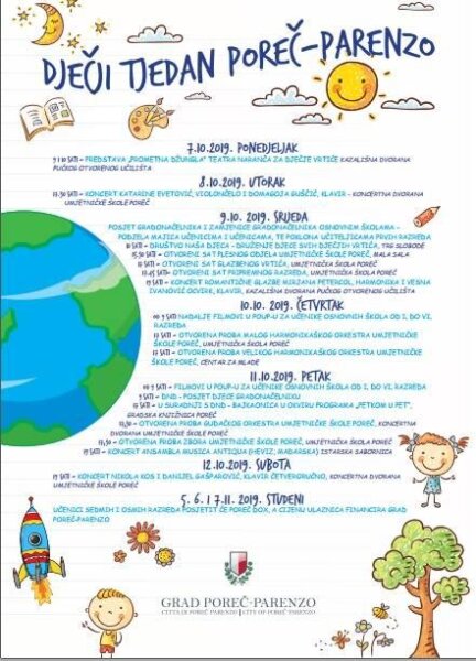 U povodu Dječjeg tjedna koji ove godine traje od 7. do 13. listopada, gradonačelnik Grada Poreča Loris Peršurić je s ravnateljicom Osnovne škole Poreč Nadijom Kos i v.d. ravnateljice Osnovne škole Finida Anitom Sijerković Radin, posjetio 172 učenika svih prvih razreda osnovnih škola, kako matične, tako i područnih, te im darovao majice s logom škole, poželio uspješan rad i puno novih znanja i iskustava u školi.