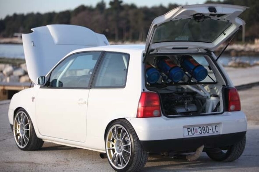 26-godišnji Petar Biočić, strojarski tehničar iz Funtane uspio je "složiti" doista impresivnu malu jurilicu: u VW Lupo je ugurao dva 2.8 litarska šestocilindarska V motora. Jedan je motor ugrađen sprijeda, a drugi straga, a za dodatno povećanje snage brine sustav direktnog ubrizgavanja dušik.oksida (NOS).