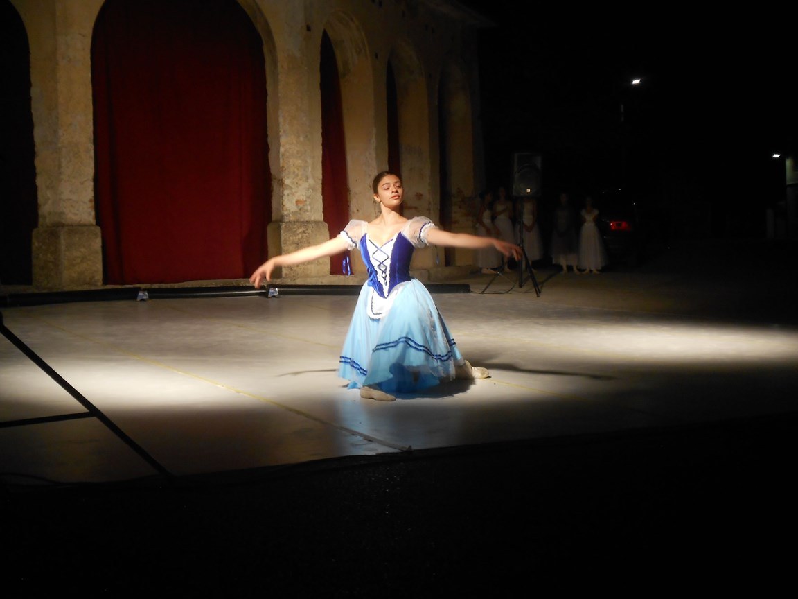 U prvom dijelu programa mlade su balerine, kao uvertiru, pokazale nekoliko baletnih vježbi. Njima je to poslužilo za zagrijavanje, a publici koja se rijetko susreće s baletom prigoda da bolje upoznaju ovu umjetnost. U drugom dijelu programa, na jedinstvenoj pozornici u srcu stare Vižinade, izvodile su dijelove iz baleta "Giselle", jednog od najljepših romantičnih baleta izvorno napisanog za Carlottu Grisi rođenu u Vižinadi 1819. Originalnu koreografiju osmislili su Jean Coralli i Jules Perrot, Carlottin ljubavnik, libreto su napisali Théophile Gautier i Vernoy de St Georges, a glazbu Adolphe Adam. Praizvedba "Giselle" održana je u Théâtre National de l’Opéra Paris, 1841. godine, a naslovna uloga vinula je dvadesetdvogodišnju Carlottu Grisi u sam svjetski vrh baletne umjetnosti. Balet je već nakon prvih predstava izazvao senzaciju, a djevojka iz Vižinade ovjenčana slavom plesala je na prestižnim pozornicama u Londonu, Petrogradu, Beču, Berlinu, Milanu i Bostonu.