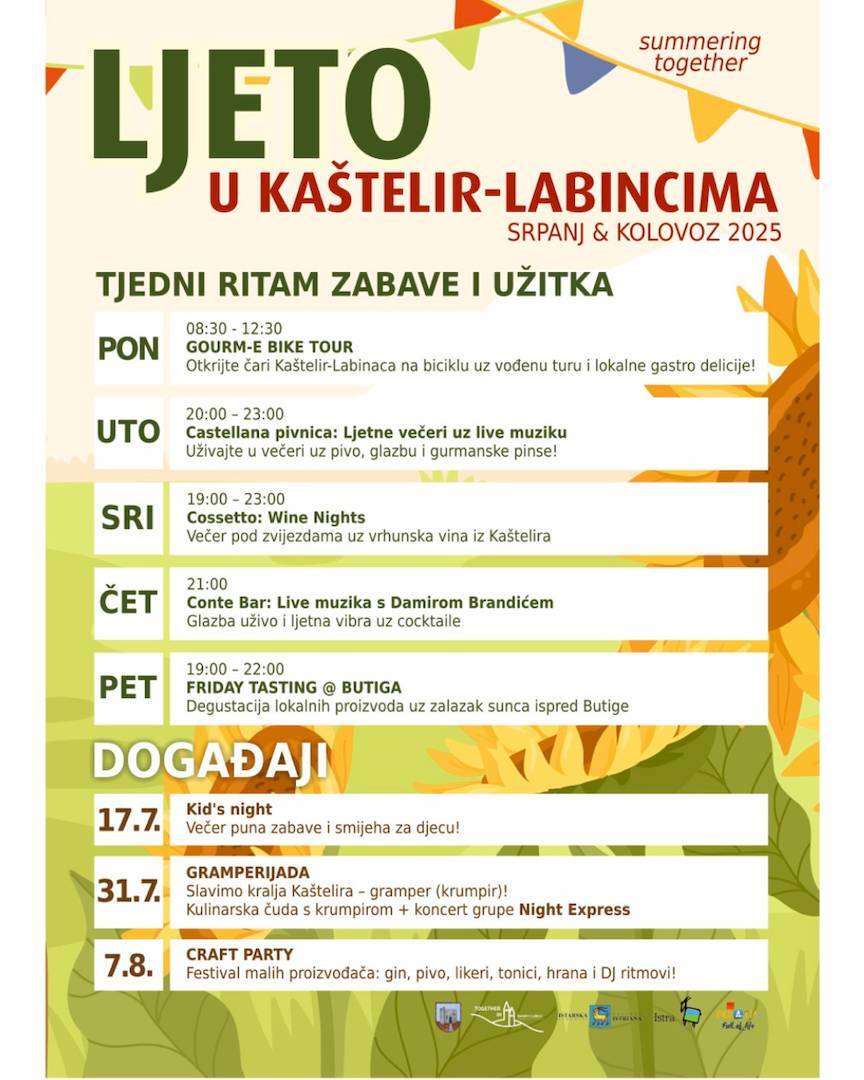 Ljeto u Kašteliru i Labincima 2025. zajednički je naziv za niz događanja koja se tijekom srpnja i kolovoza održavaju u ova dva mjesta unutar općine Kaštelir-Labinci. Program, koji koordinira Turistička zajednica općine, osmišljen je kako bi istaknuo lokalnu tradiciju, domaće proizvode, gostoljubivost i glazbeni ritam koji pristaje istarskim ljetnim večerima.