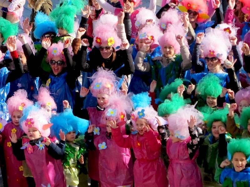 Odgajateljice vrtićkih skupina i roditelji i djeca uložili su puno truda u svoje maske i odabir glazbe za ples, pa su Trgom slobode plesale šarene hobotnice, čista ljubav, smajlići, zebre, prometni znakovi, ježići, Lego kockice, duge, snjegovići, ptice, čokoladni muffini, morska bića, srećkovići, plesači, bomboni, spužve Bob i šareni trolovi.