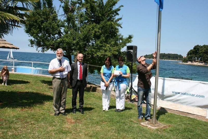 Plava zastava za plaže i marine je međunarodni ekološki program zaštite okoliša mora i priobalja, čiji je cilj održivo upravljanje i gospodarenje morem i obalnim pojasom. Intelektualni vlasnik Plave zastave i međunarodni voditelj ovog programa je Zaklada za odgoj i obrazovanje za okoliš – Foundation for Environmental Education – FEE , utemeljena 1981.godine. Do sada je podignuto preko 4000 Plavih zastava diljem svijeta, a u Hrvatskoj one vijore na 102 plaže i u 18 marina. Na svečanosti su u kulturno umjetničkom programu nastupili dječji vrtić Radost, plesna grupa USB-a pod vodstvom Ivane Domazet i ženski zbor Balotice pod mentorstvom Debore Cukola Zeneral.
