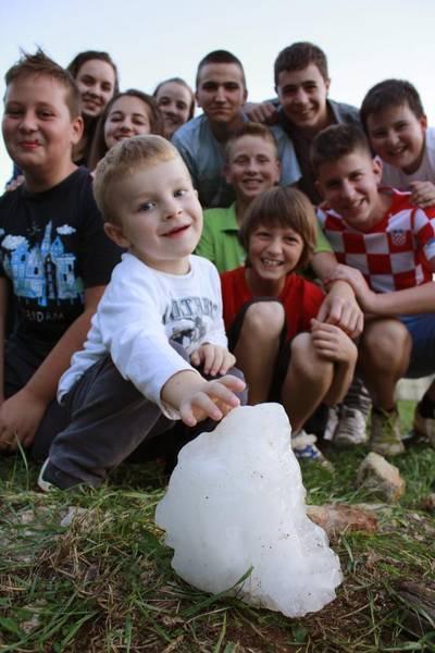 Gromada leda velika kao sadržaj jedne karijole pala je s neba danas oko 18.20 sati i rasprsnula se na livadi u Ritošinom Brigu na području Općine Vižinada.