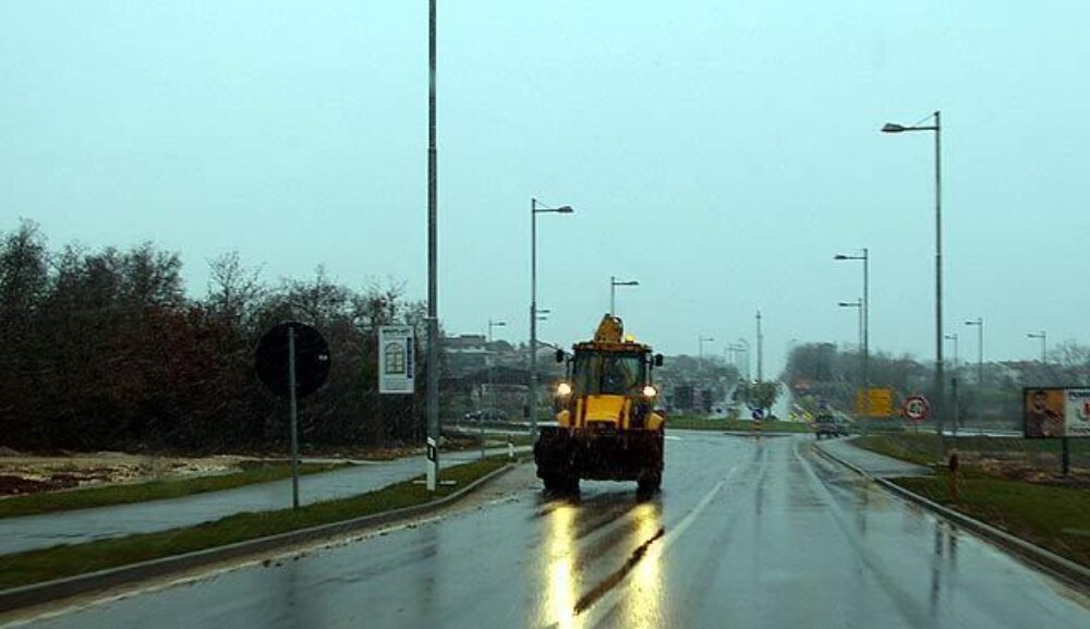 Zimski uvjeti: snijeg i blato na cesti Kaštelir-Vižinada