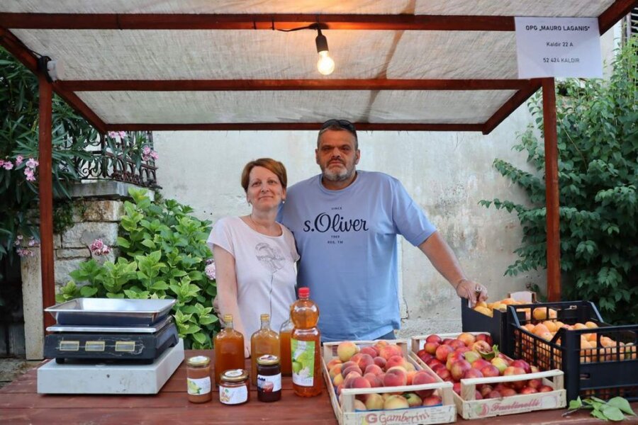 Svježe voće je u Sveti Lovreč stiglo iz istarske voćarske Kalifornije odnosno Kaldira: Danijela i Dean Laganis na štandu svog OPG-a nude svježe breskve, marelice i nektarine, jabučni ocat, džemove od krušaka, marelica, grožđa i jabuka, te nešto prilično rijetko i posebno: likere od marelice i breskve.
