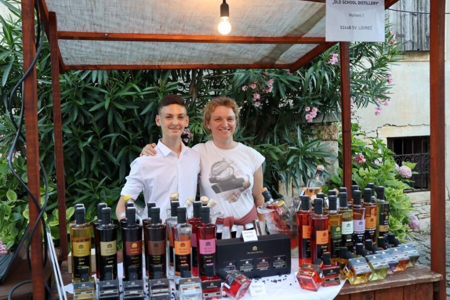 Sljedeći štand otkriva nam kreativno blago lokalne destilerije Old School iz sela Vošteni. Ako se u obilju ponude ne budete mogli snaći, odmah ćete dobiti objašnjenje da su medica, biska, travarica i teranino svojevrsna "istarska klasika", da je Rosettino mali odmak od te klasike koji se posebno sviđa ženama, a riječ je o likeru od rose vina napravljenog od terana, merlota i cabernet sauvignona.