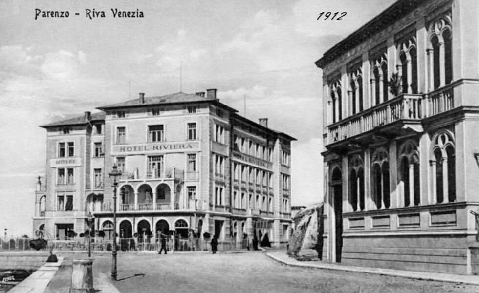 Manje je poznato da je prvi vlasnik i ulagač u izgradnju hotela Riviera bio austrijanac Friedrich Klein koji je 1910.g. (12. lipnja, dakle, na današnji dan prije 103.godine) uložio silan novac kako bi na umjetno stvorenom morskom nasipu podigao hotel Palace u vlasništvu akcionerskog društva “Oesterreichische Riviera”, a njegovo je otvorenje zabilježeno i u ondašnjem pulskom dnevniku “Polaer Tagblatt”.