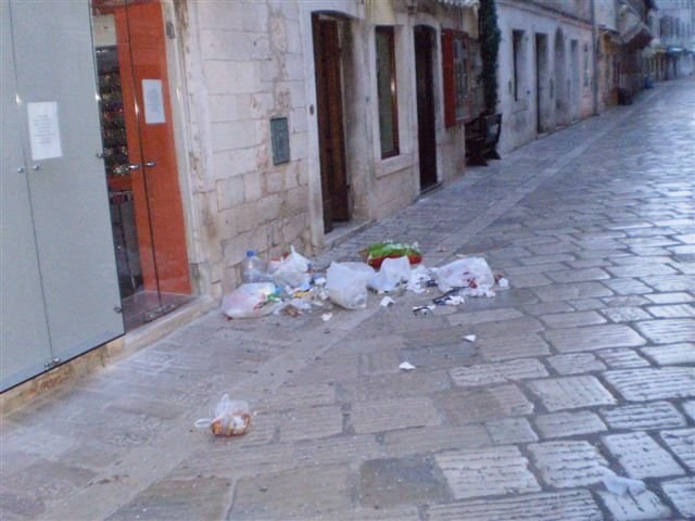 -U ranim jutarnjim satima se gotovo svakodnevno na ulicama mogu pronaći poveće količine smeća, uglavnom organskog porijekla, kao i kartonske ambalaže iz domaćinstava, trgovačkih radnji i ugostiteljskih lokala po središnjim ulicama grada.