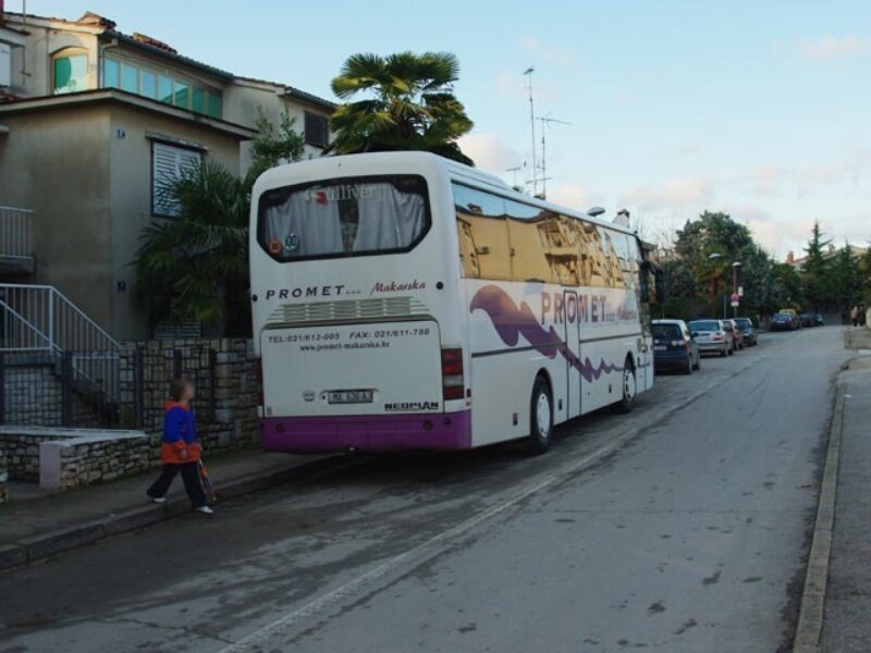 Vozač autobusa ”Prometa” iz Makarske dugo je manevrirao dok ga je kondukter navodio, sve u pokušaju da parkira u ulici u koju je autobusom potpuno besmisleno i ulaziti, onoj Stipe Rajka.
