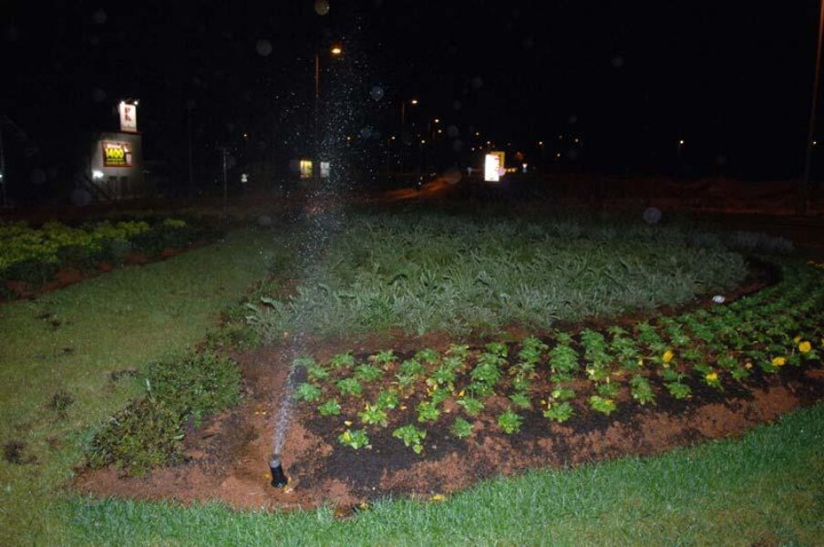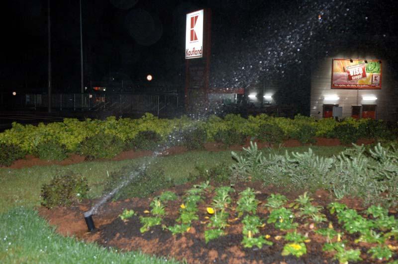 Jesen je, gluho doba noći, kiša pada. No, izgleda da to brizgaljke za polijevanje zimske salate u rotoru kod Kauflanda ne znaju, ili im nitko nije rekao.